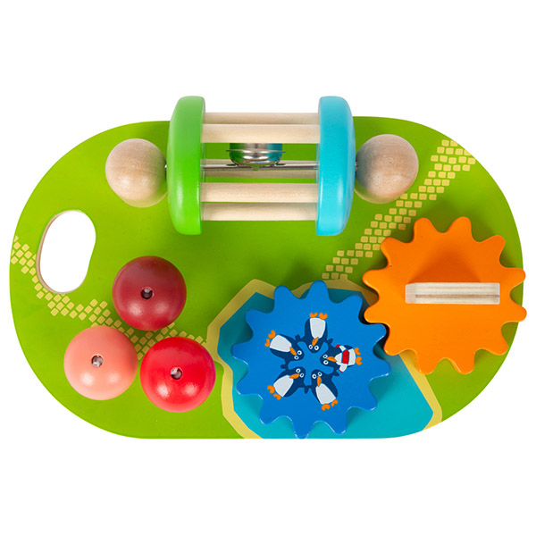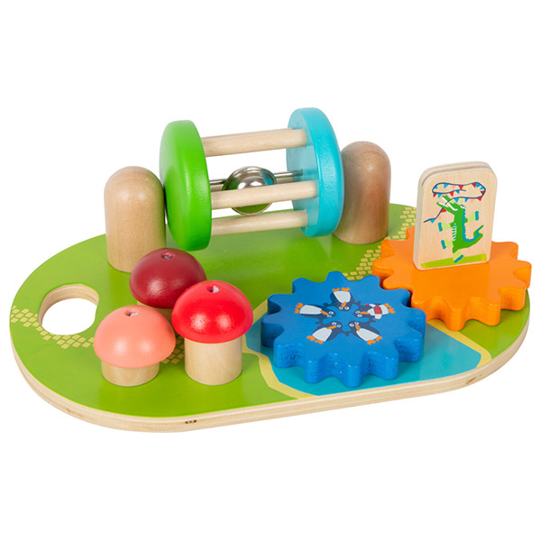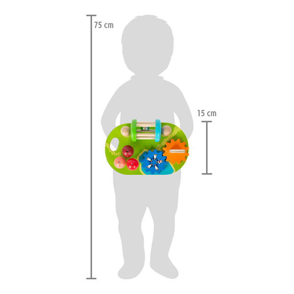 Een compact speeltje met allerhande beweegbare onderdelen om lekker mee te prutsen. Stimuleert de handigheid en de fijnmotoriek bij de allerkleinsten.