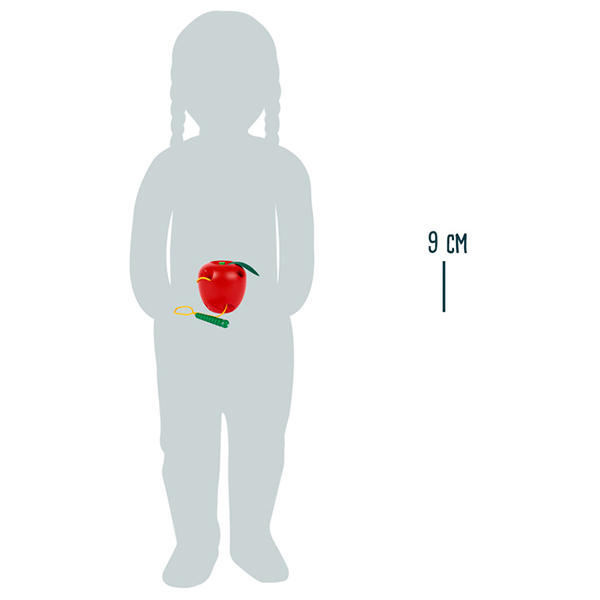 De rups in de appel moedt jonge kinderen aan om op een leuke manier te oefenen met rijgen. Speciaal ontworpen om goed vast te houden voor kinderhanden.