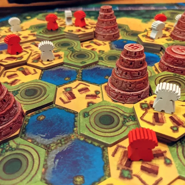 De spelers breiden dorpen uit, richten tempels op en organiseren feesten. Met het aanleggen van dorp en landbouw tegels vergroot je gebieden en blokkeer je dorpen van andere spelers terwijl je steeds hogere temperls bouwt.