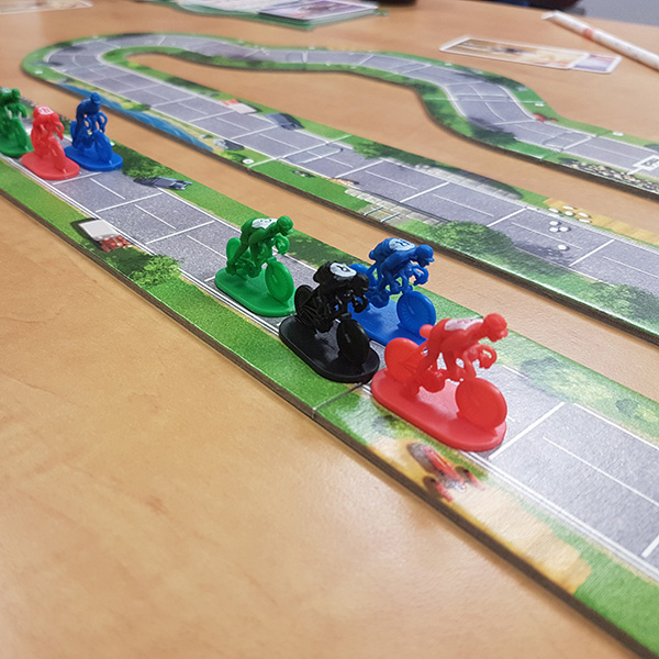In Flamme Rouge stuur je een duo wielrenners, een Rouleur en een Sprinteur, over uitdagende parcoursen. Met kaarten bepaal je hoe ver ze vooruitgaan, gebruik je slipstream om energie te besparen en probeer je als eerste de finish te bereiken. Timing en strategie zijn cruciaal.