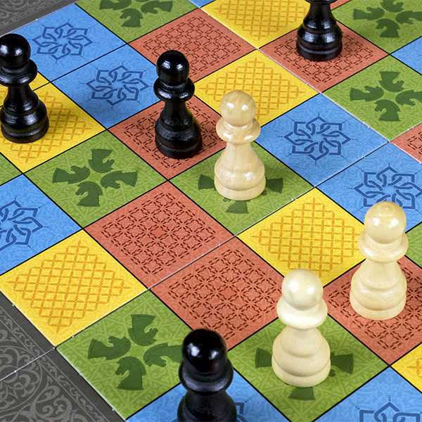 Voor elk spel is het bord opgebouwd uit vier dubbelzijdige kwartborden, die elk naar boven en om het even welke kant kunnen worden geplaatst, wat een totaal van 4096 verschillende 8x8 borden oplevert.