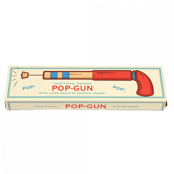 Nog zo een klassieker, het geweertje waarbij je door een goede duw luchtdruk opbouwt en het kurkje eruit laat knallen.