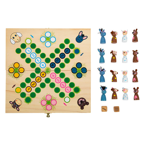 Elke speler probeert zo snel mogelijk zijn 4 boerderijdiertjes naar het midden van het spelbord te loodsen volgens de aloude 'mens erger je niet' regels.