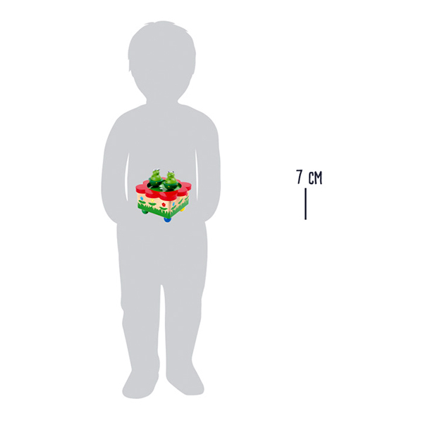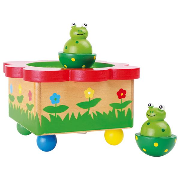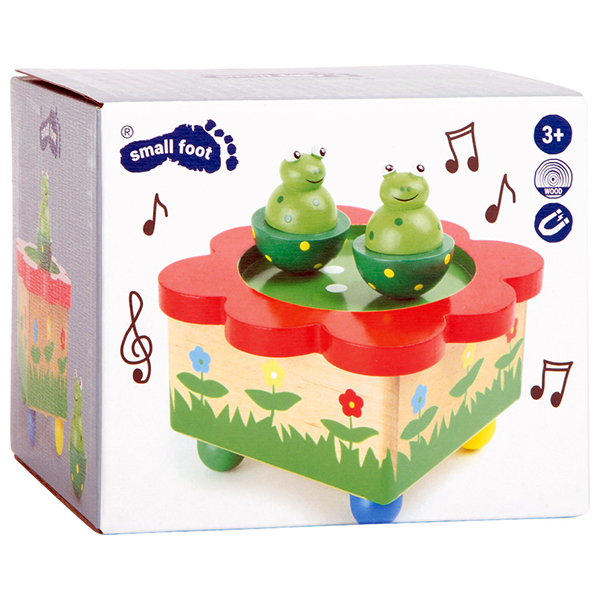 Twee gekke kikkers dansen vrolijk om elkaar heen bovenop dit muziekdoosje met aanstekelijk deuntje.