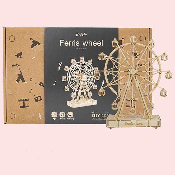 Een klassieker, het reuzenrad. Een interactieve blikvanger die echt ronddraait via een opwindmechanisme en ondertussen muziek afspeelt