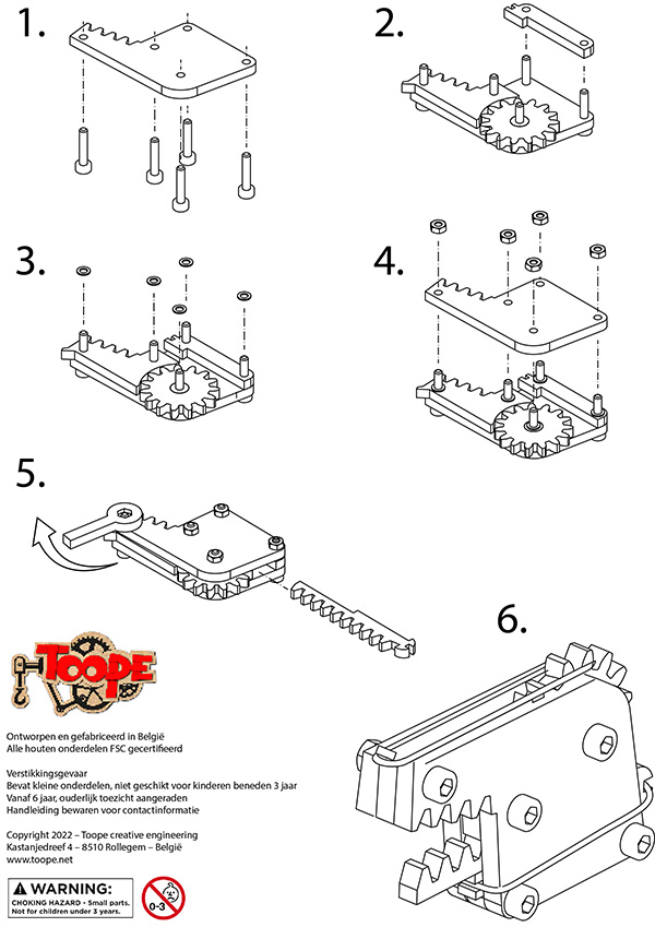 Heel eenvoudig setje vanaf 8 jaar (of janger als een volwassene helpt) om de eerste stapjes te zetten in de wereld van de grote bouwdozen.