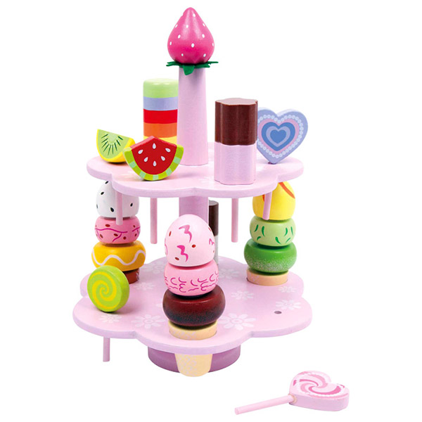 Deze prachtige etagère van hout is een echte blikvanger op de koffietafel. Hiermee worden muffins, koekjes en allerlei snoepjes gepresenteerd.